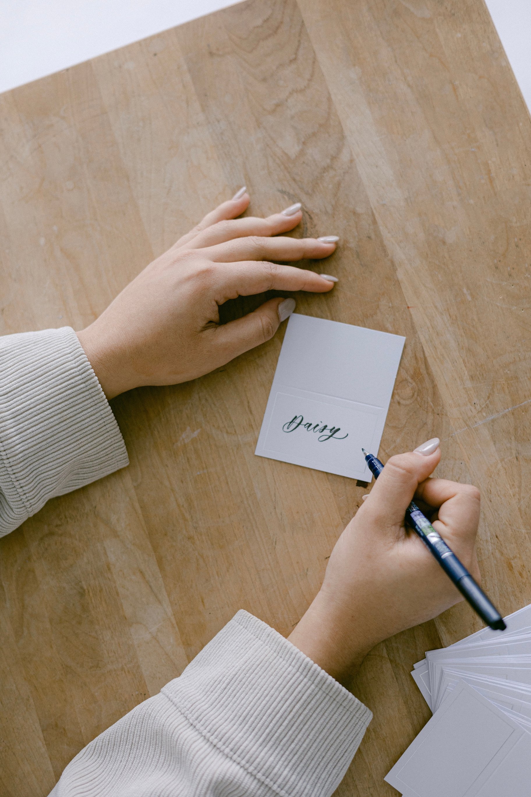custom place cards, card writing, product customizations for gifting