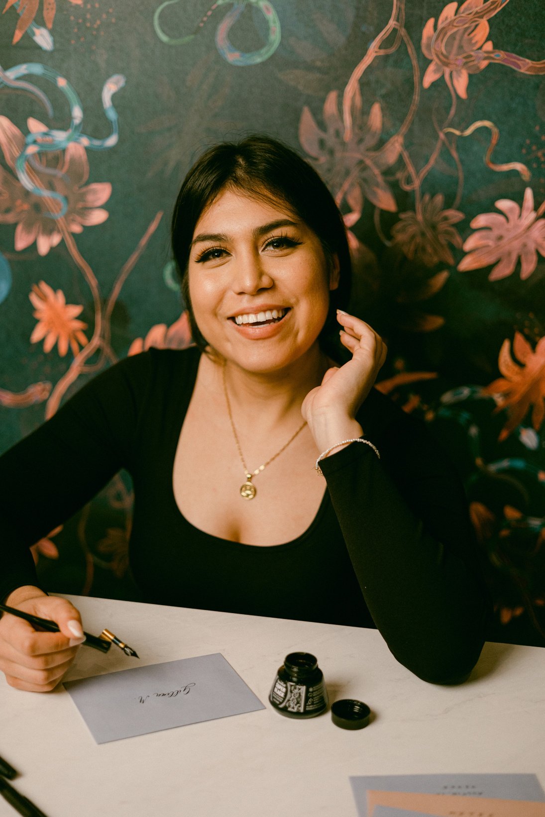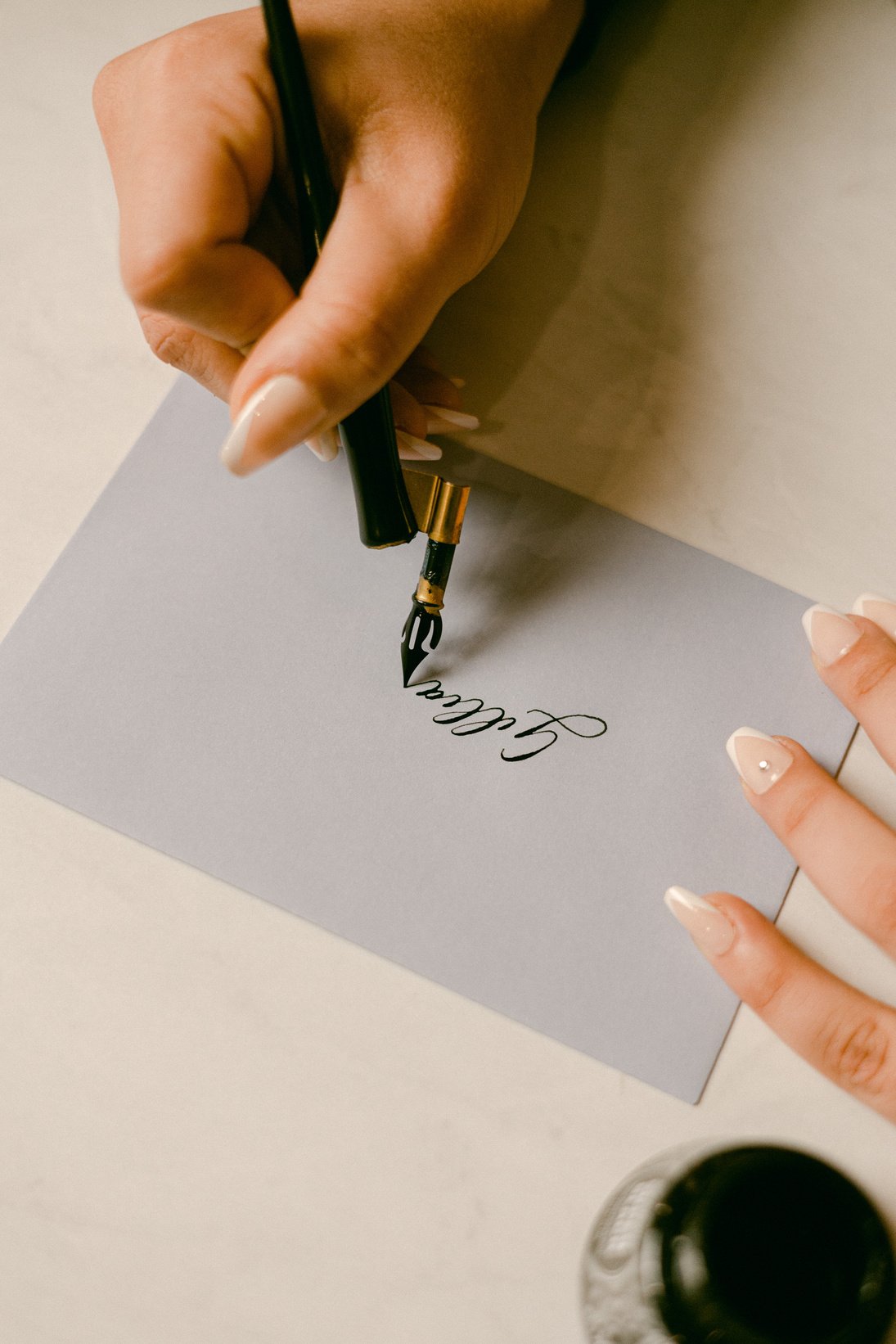 I first became interested in calligraphy as a young college student and I slowly but surely starting honing and perfecting my skills through various custom commissions and weddings/events.